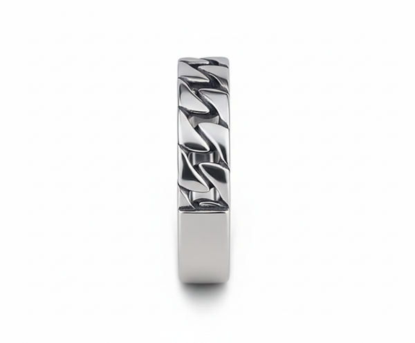 Our genuine .925 Chain Link Ring is a beautiful addition to anyone's collection. This is our first official first piece from the Auron Steel Family!